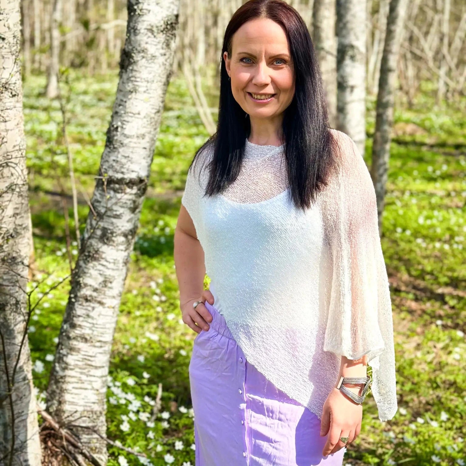 Ella Viitta Ulla Jacobsson Kläder -mallistosta on yksi suosituimmista tuotteistamme – ajaton klassikko, johon moni ihastuu heti. Kevyt, ohutneulottu ja miellyttävän pehmeä viitta, joka sopii kaikenikäisille ja kaikenmuotoisille. Voit käyttää sitä monella tavalla: viittana, huivina tai luoda omaan tyyliisi sopivia kerroksia. Monet palaavat hakemaan toisen Ella Viitan eri värissä – se on niin helppo yhdistää arkeen ja juhlaan.