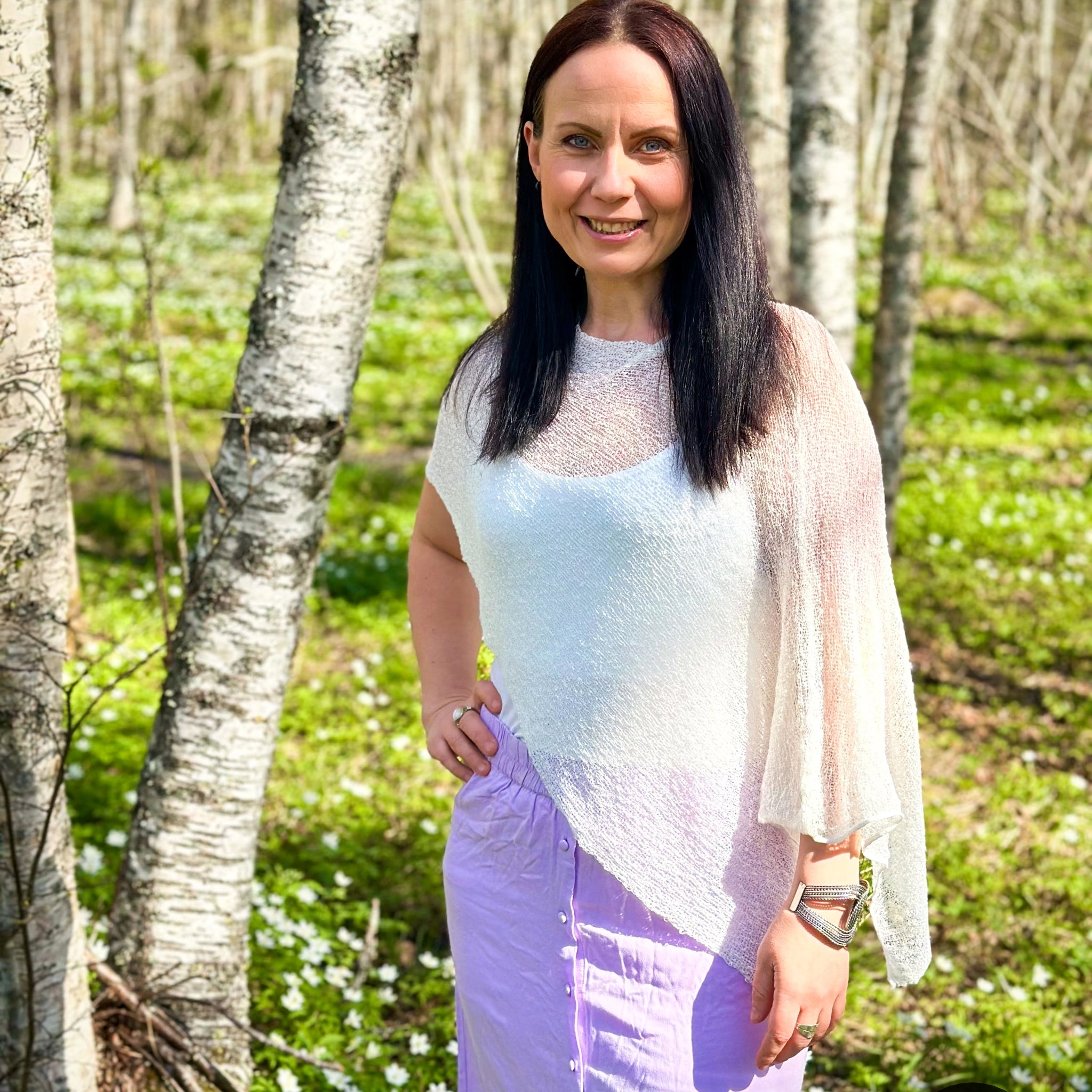 Ella Cape från Ulla Jacobsson Kläder är en älskad klassiker och storsäljare. Den är finstickad, mjuk och lätt, och passar dig oavsett ålder eller kroppsform. Med sin smarta design kan du bära den som en sjal eller cape – knyt den, vrid den eller styla den i lager-på-lager precis som du vill. Många som har en Ella Cape skaffar snart en till i en ny färg, för den är så enkel att matcha till allt.