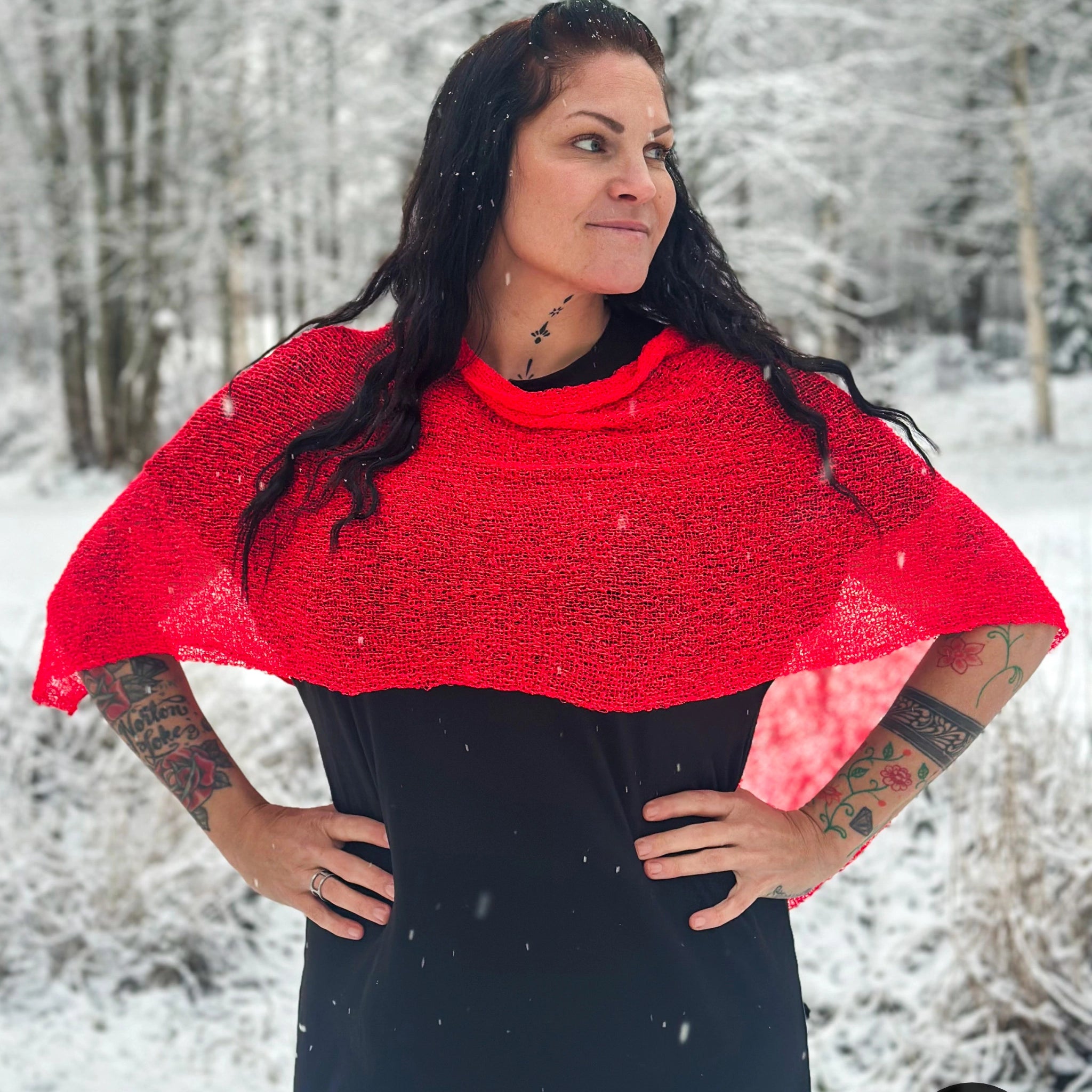 Ella Cape från Ulla Jacobsson Kläder – Finstickad och Mångsidig Cape för kvinnor som älskar färger